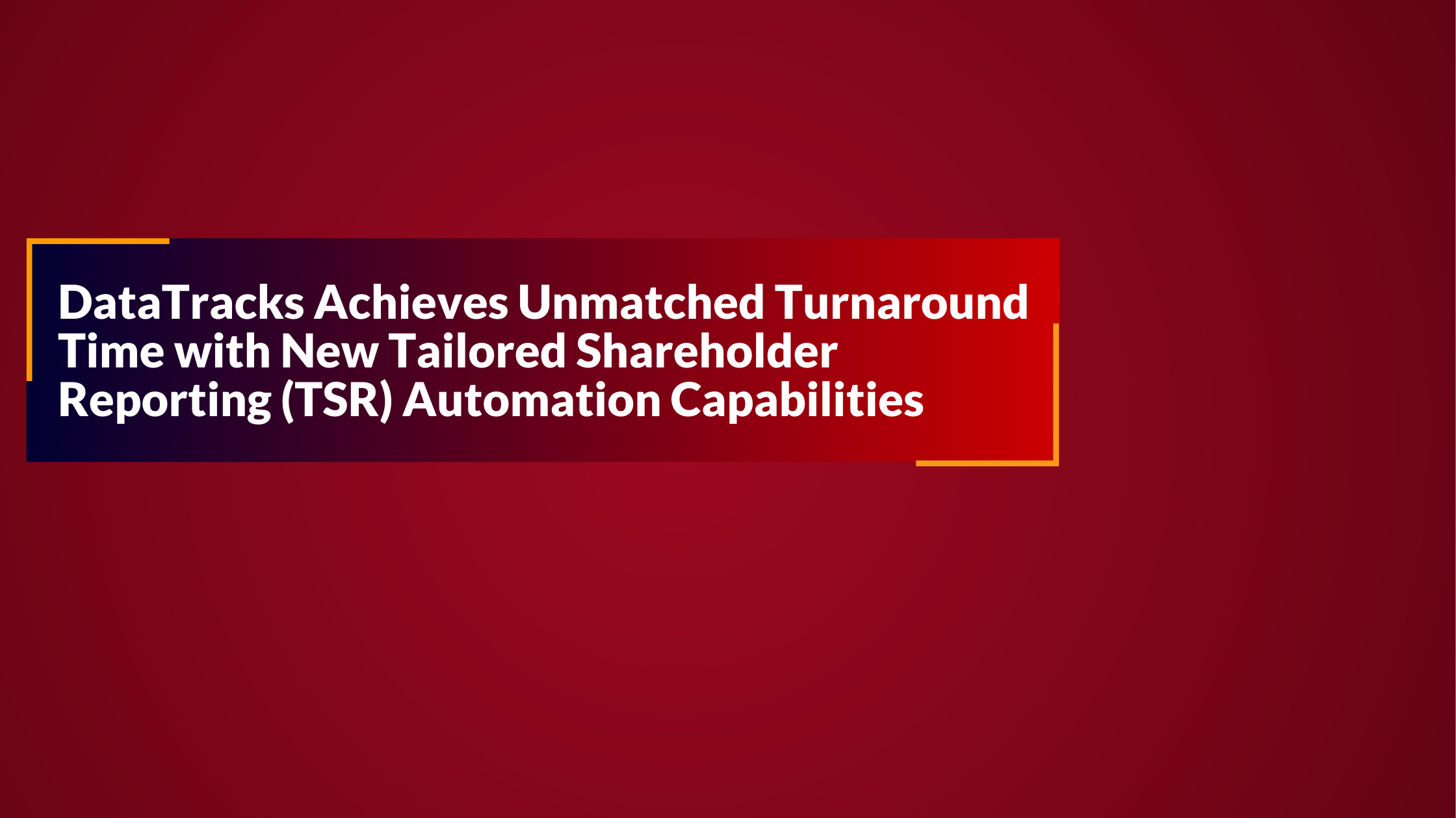 DataTracks Achieves Unmatched Turnaround Time with New Tailored Shareholder Reporting (TSR) Automation Capabilities